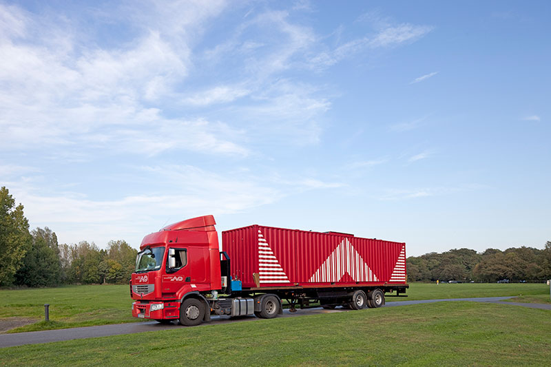 Con su estructura de contenedor, el camión se despliega como un muñeco transformer y se convierte en un museo con cuatro espacios diferenciados. La pintura, la escultura, la instalación, el vídeo o el diseño sumergen a los niños en universos diferentes donde acercarse al arte de forma libre.