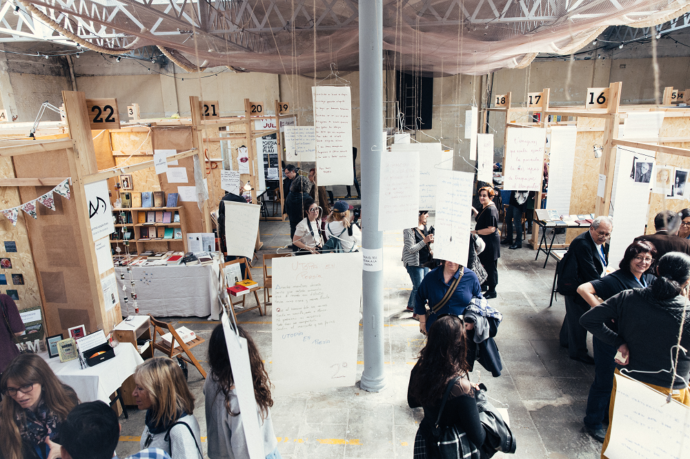 El descubrimiento, la interacción, la conversación, la relación directa con los poetas son parte de los valores que el público del UtopiaMarkets Poesíae ncuentra a lo largo de los tres días en que la fábrica modernista de Utopía 126 -en el barrio del Poblenou se transforma en la casa de la poesía y la poesía visual y en el mercado donde comprar directamente a los autores obras singulares y de calidad fuera de los circuitos habituales.
