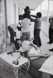 Carlos Saura, descanso en el rodaje Ana y los Lobos, Madrid, 1972