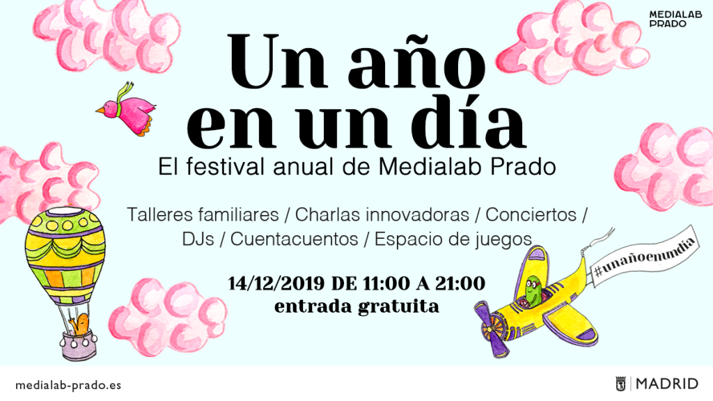 Medialab Prado celebra el próximo sábado, 14 de diciembre, una jornada festiva repleta de talleres, mini-presentaciones, actuaciones y actividades para todos los públicos que mostrarán lo más representativo de la actividad de 2019 de este laboratorio de innovación ciudadana, referente en nuestro país y fuera de él.
