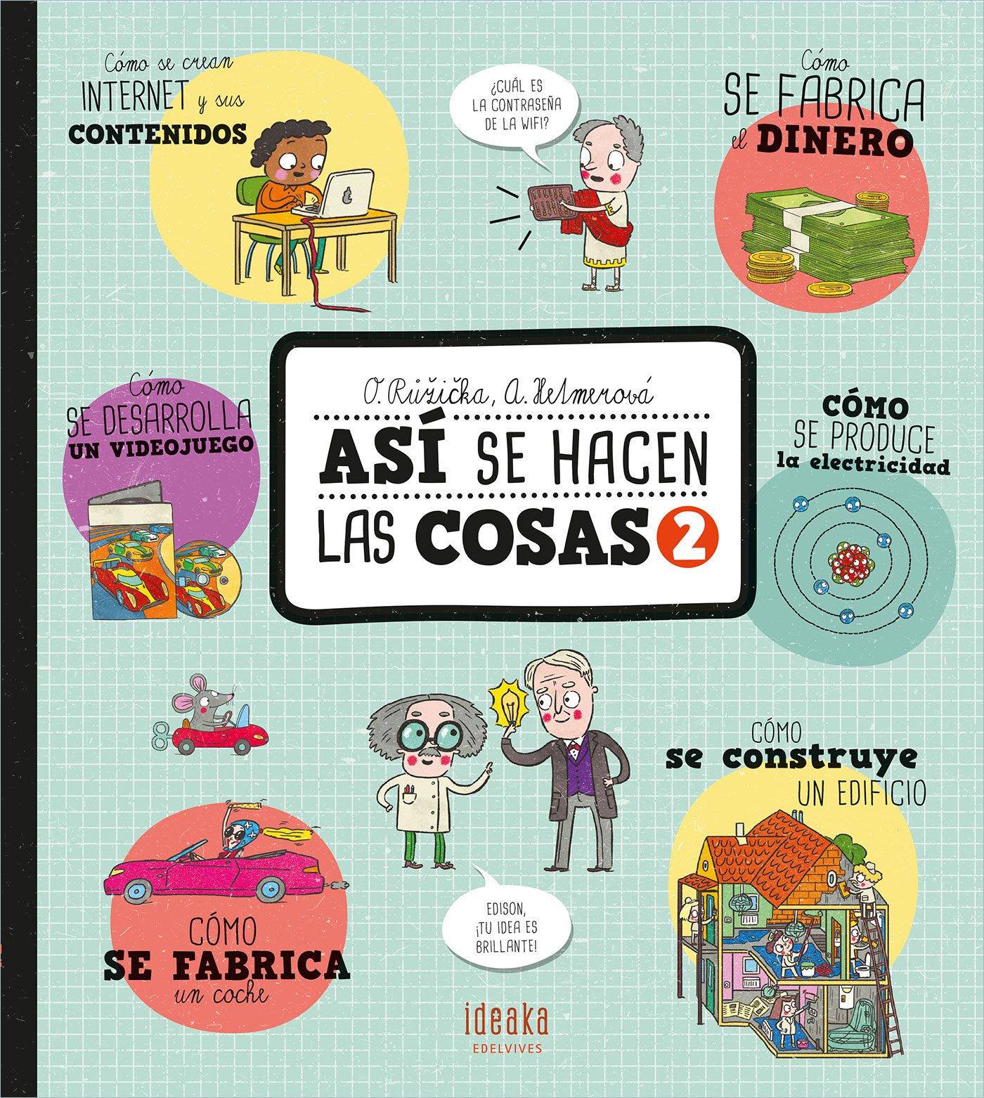 Singular libro desplegable con seis historias diferentes: ¿Cómo se construye un edificio?, ¿Sabes cómo se produce la electricidad?, ¿Cómo se fabrica un coche?, ¿Sabes cómo se crea internet?, ¿Cómo se desarrolla un videojuego? y ¿Sabes cómo se fabrica el dinero?