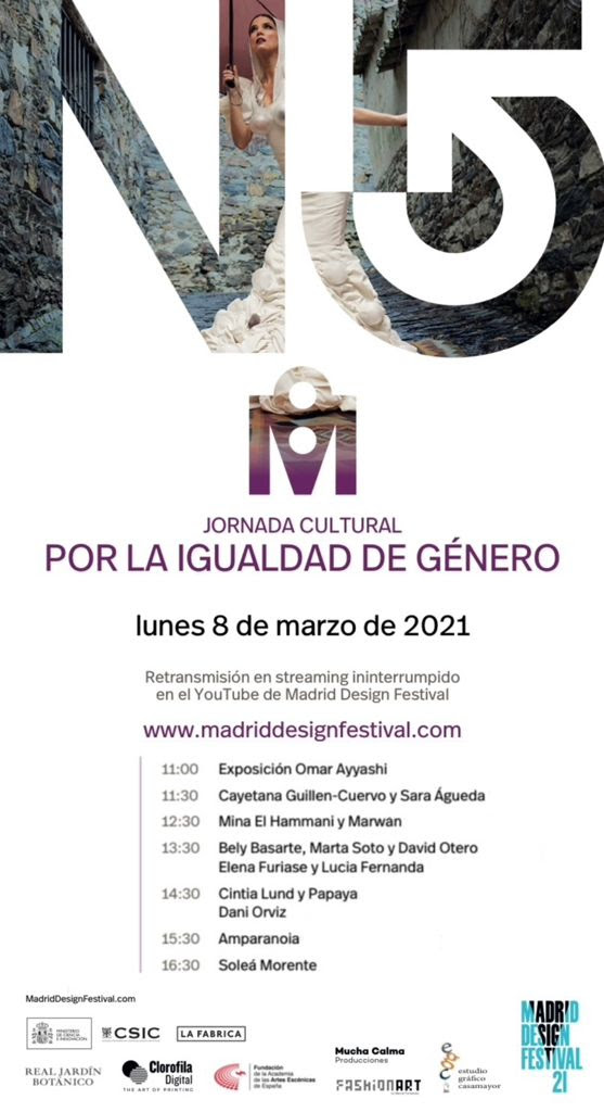 El próximo lunes 8 de marzo, entre las 11 y las 17 horas, la exposición N5 del fotógrafo Omar Ayyashi, que puede visitarse en el Pabellón Villanueva del Real Jardín Botánico, dentro de la programación de Madrid Design Festival 2021, acogerá una programación cultural especial para celebrar el Dia Internacional de la Mujer.