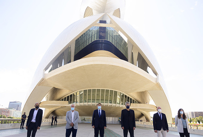 València será la sede de los 36 Premios Goya, que se celebrarán el 12 de febrero de 2022 en el Palau de Les Arts, ha anunciado este viernes el presidente de la Academia de Cine, Mariano Barroso, junto al president de la Generalitat, Ximo Puig; el alcalde y la vicealcaldesa de la ciudad del Turia, Joan Ribó y Sandra Gómez López; el president de la Diputació de València, Toni Gaspar; y el vicepresidente de la Academia, Rafael Portela.